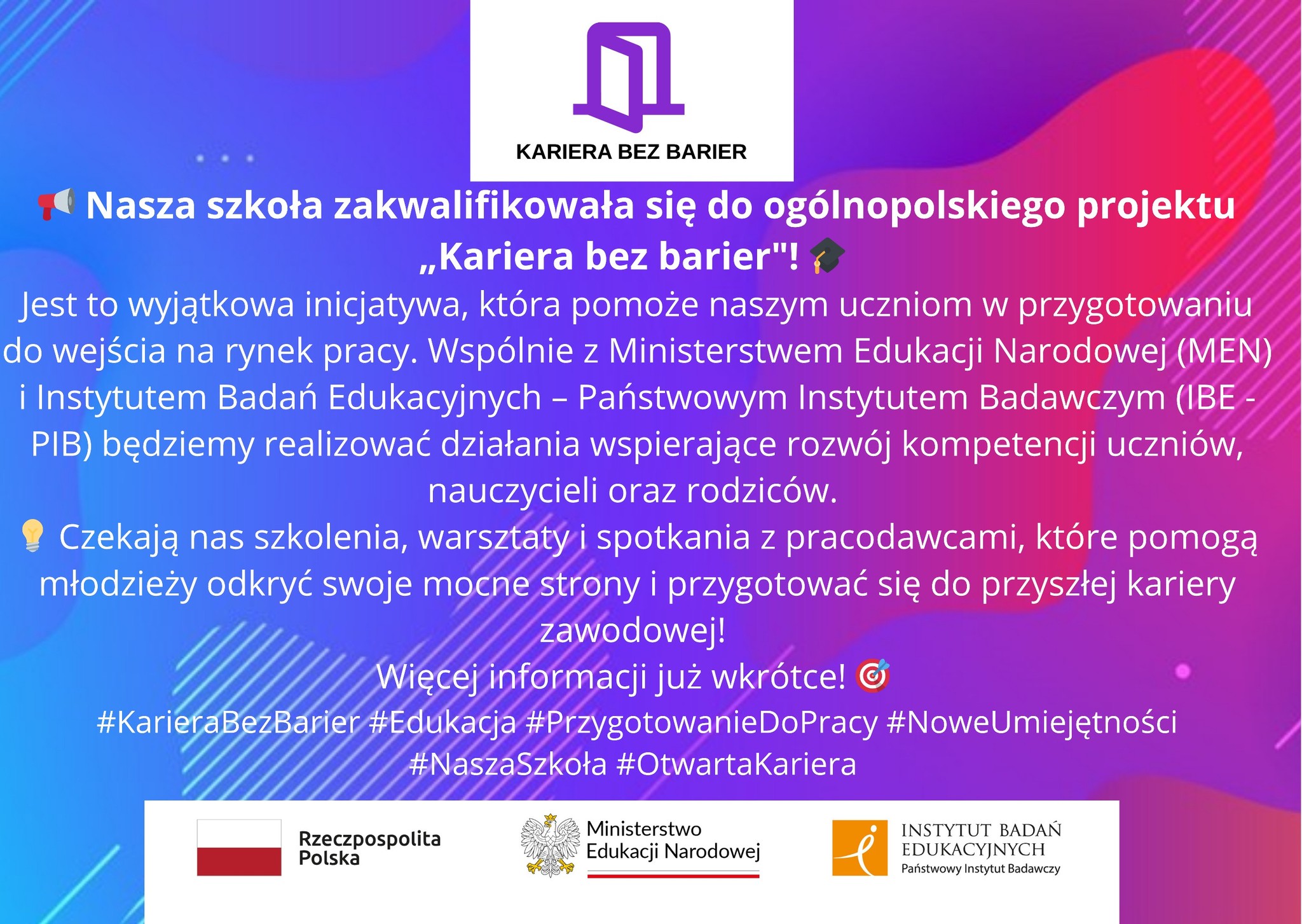 Zespół Szkół Zawodowych Nr 2 w Ostrołęce w projekcie „Kariera bez barier”!